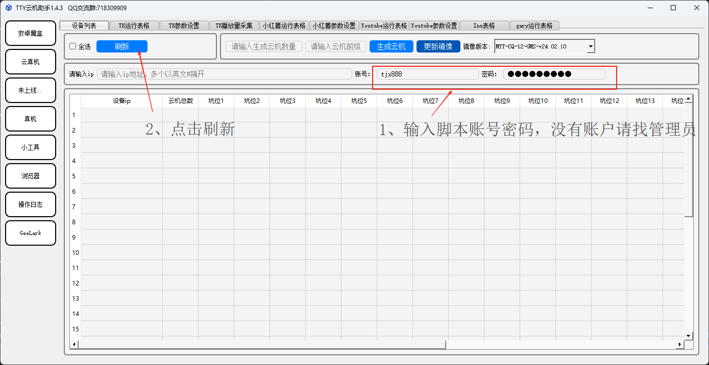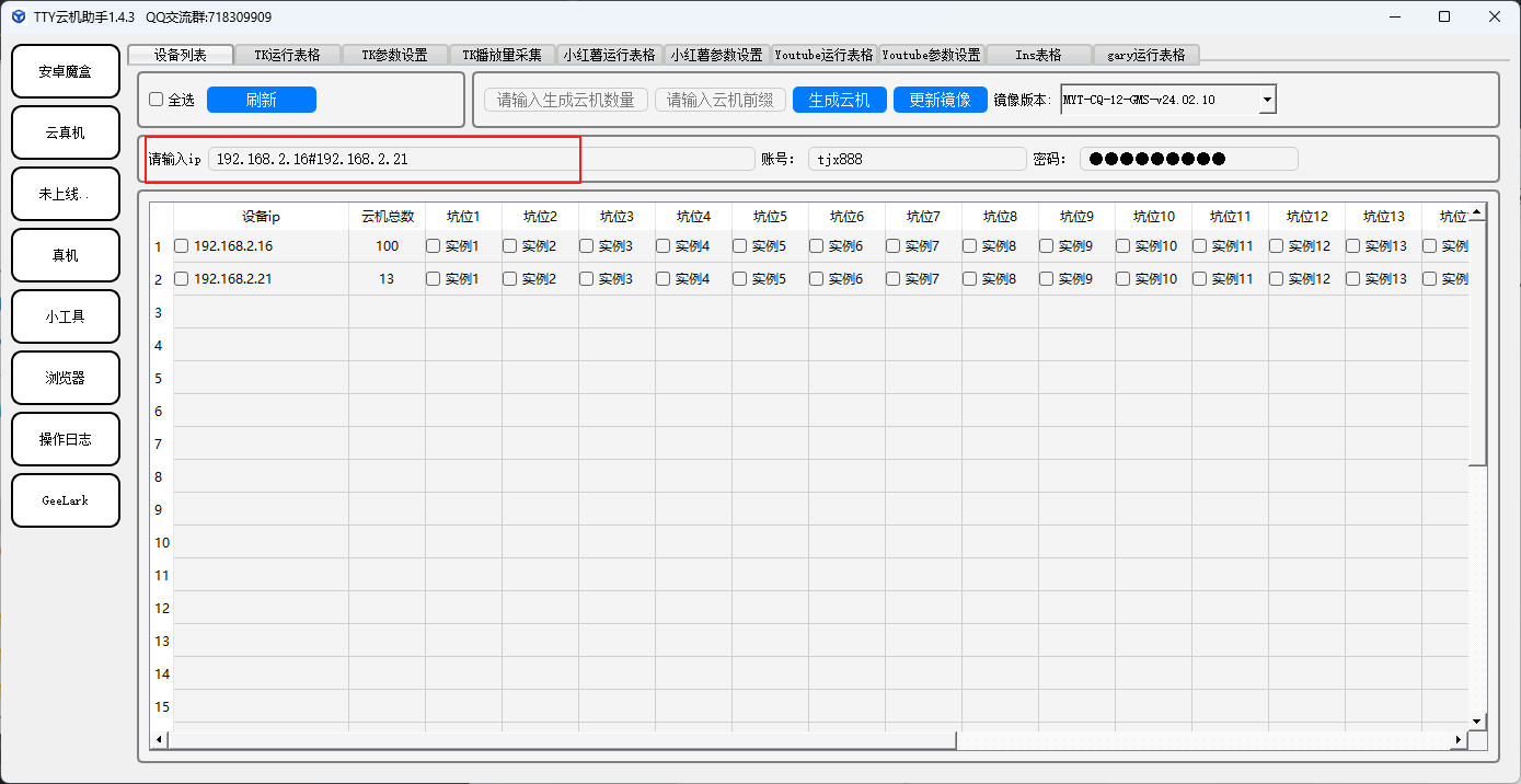 一、刷新出盒子ip 本地如果开了科学上网可能导致刷新不出来,需要手动输入ip 勾选需要运行的ip和坑位(一定要记得勾选ip) 二、前往运行表格刷新云机并开始运行 三、设置ip...